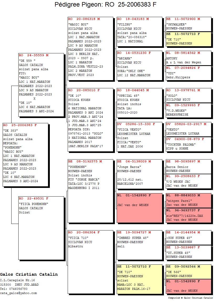 These results highlight not only professionalism and consistency in pigeon racing but also a clearly defined strategy in genetic selection, training, and sporting management. The outstanding performances achieved by his pigeons confirm Galoș Cătălin’s position among the leading breeders in the region and contribute to strengthening the prestige of marathon and extreme marathon competitions in Romania.