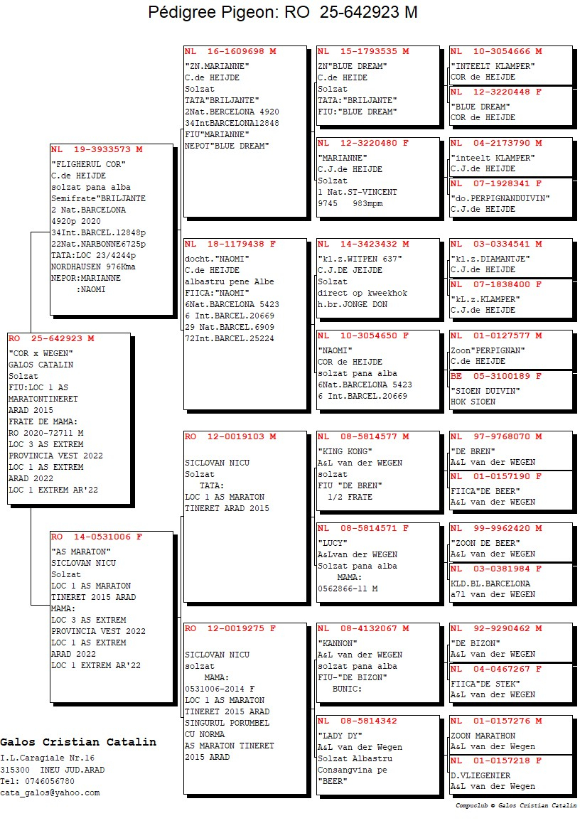 These results highlight not only professionalism and consistency in pigeon racing but also a clearly defined strategy in genetic selection, training, and sporting management. The outstanding performances achieved by his pigeons confirm Galoș Cătălin’s position among the leading breeders in the region and contribute to strengthening the prestige of marathon and extreme marathon competitions in Romania.