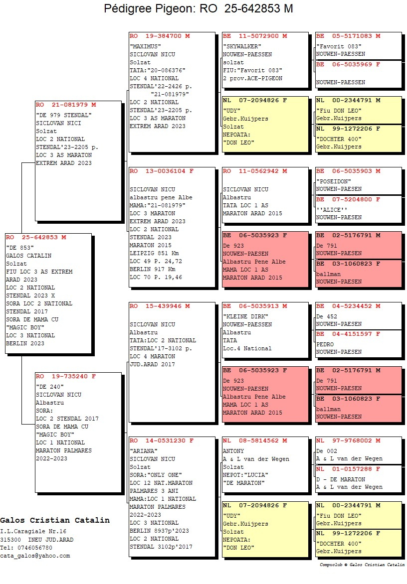 These results highlight not only professionalism and consistency in pigeon racing but also a clearly defined strategy in genetic selection, training, and sporting management. The outstanding performances achieved by his pigeons confirm Galoș Cătălin’s position among the leading breeders in the region and contribute to strengthening the prestige of marathon and extreme marathon competitions in Romania.