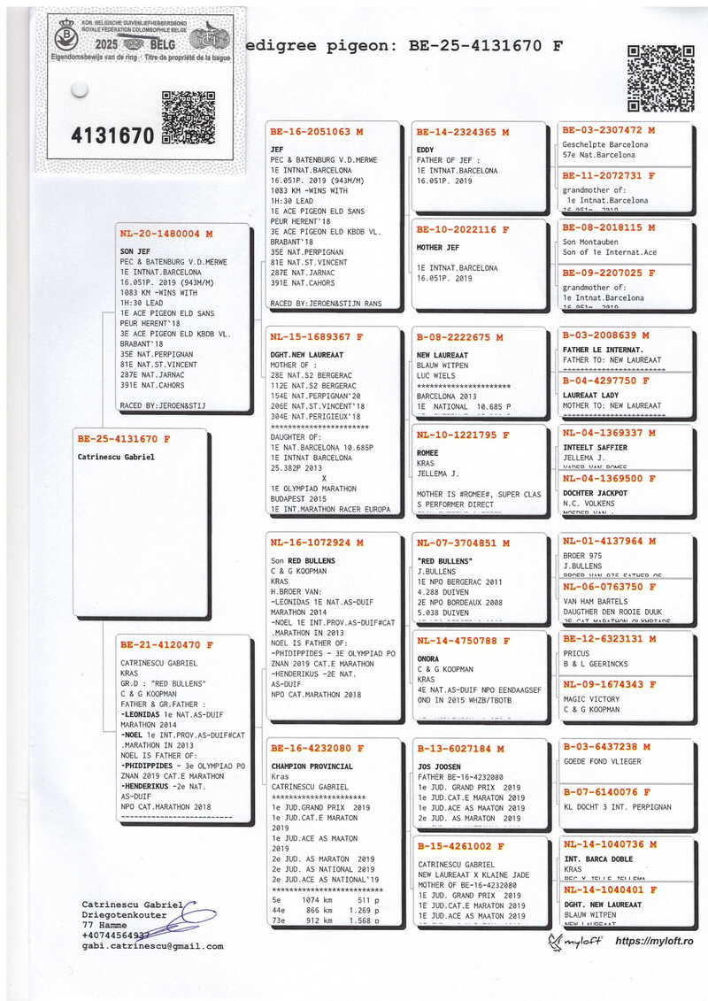 Gabriel Catrinescu does not offer promises – he offers continuity in excellence. For those who seek authentic quality and proven performance, this auction stands as a discreet yet firm invitation to the very essence of modern pigeon sport – where true value is confirmed in flight.