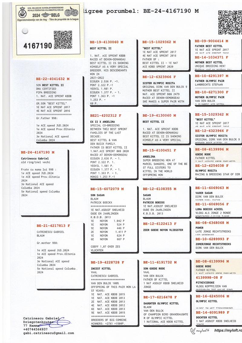 Gabriel Catrinescu does not offer promises – he offers continuity in excellence. For those who seek authentic quality and proven performance, this auction stands as a discreet yet firm invitation to the very essence of modern pigeon sport – where true value is confirmed in flight.