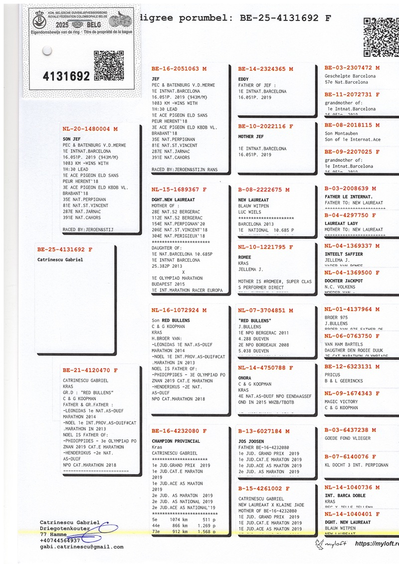 Gabriel Catrinescu does not offer promises – he offers continuity in excellence. For those who seek authentic quality and proven performance, this auction stands as a discreet yet firm invitation to the very essence of modern pigeon sport – where true value is confirmed in flight.