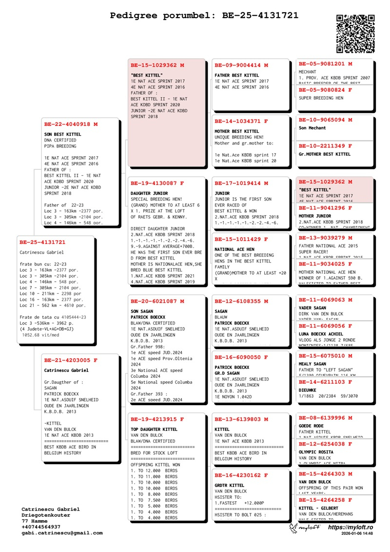 Gabriel Catrinescu does not offer promises – he offers continuity in excellence. For those who seek authentic quality and proven performance, this auction stands as a discreet yet firm invitation to the very essence of modern pigeon sport – where true value is confirmed in flight.