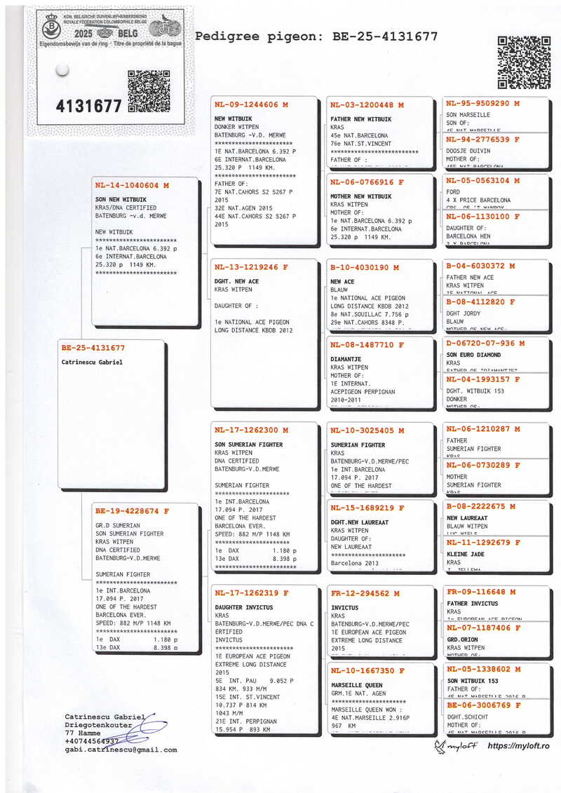 Gabriel Catrinescu does not offer promises – he offers continuity in excellence. For those who seek authentic quality and proven performance, this auction stands as a discreet yet firm invitation to the very essence of modern pigeon sport – where true value is confirmed in flight.