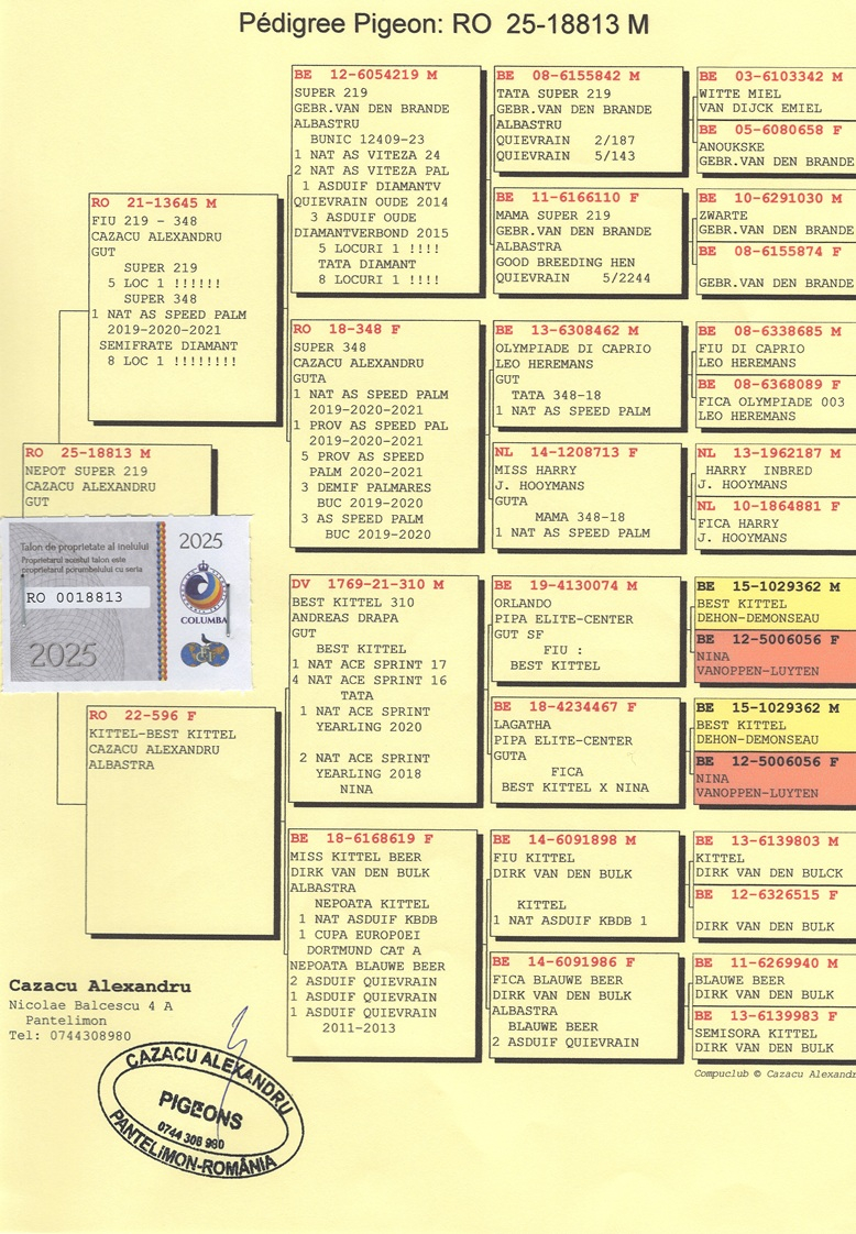 With an impressive base of over 350 breeders, including 100 specialized in marathon races, Cazacu manages one of the most well-organized lofts in the country. His birds descend from renowned European bloodlines — Koopman, Vandenabeele, Van den Bulck, Heremans, Hooymans, Jelle Jellema, Cor de Heijde, Pollin, Hebberecht, Vandenheede, among others — all rigorously selected for their performance potential in each racing category.