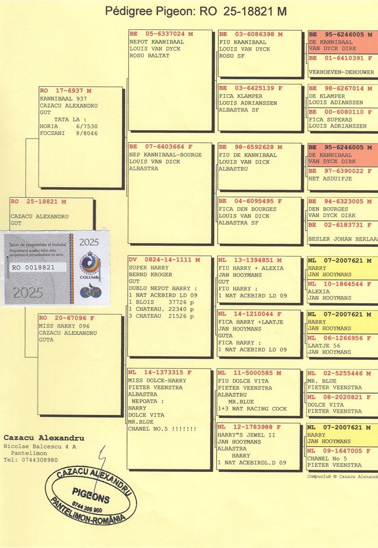 With an impressive base of over 350 breeders, including 100 specialized in marathon races, Cazacu manages one of the most well-organized lofts in the country. His birds descend from renowned European bloodlines — Koopman, Vandenabeele, Van den Bulck, Heremans, Hooymans, Jelle Jellema, Cor de Heijde, Pollin, Hebberecht, Vandenheede, among others — all rigorously selected for their performance potential in each racing category.