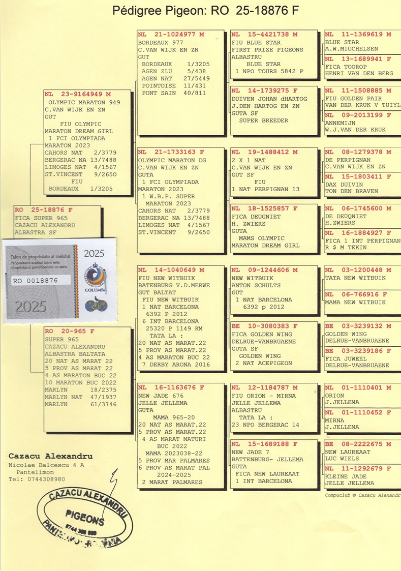 Through these results, Cazacu proves that success can be replicated at all levels of pigeon racing, when rigorous selection is combined with exemplary organization. His racing teams are developed separately for each category, with close monitoring of essential factors such as vitality, recovery ability, orientation, and consistency.