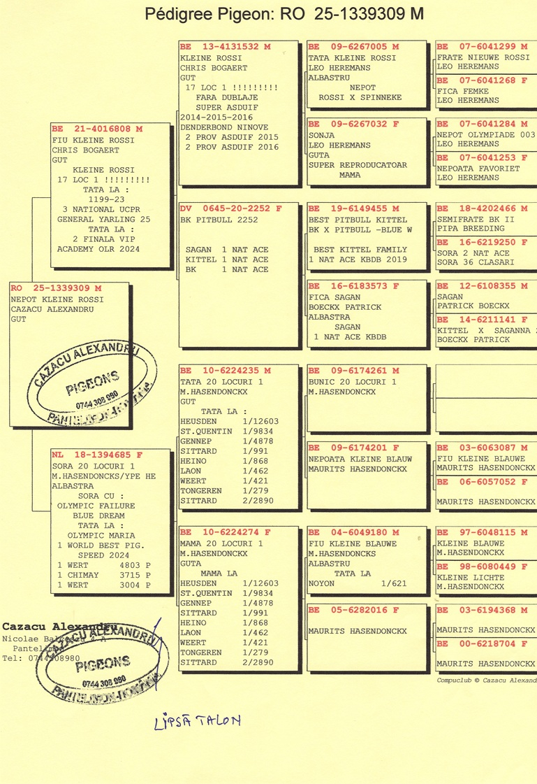 Through these results, Cazacu proves that success can be replicated at all levels of pigeon racing, when rigorous selection is combined with exemplary organization. His racing teams are developed separately for each category, with close monitoring of essential factors such as vitality, recovery ability, orientation, and consistency.