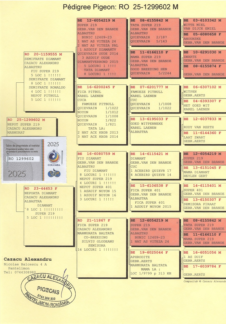 Alexandru Cazacu is not only a multiple champion but also a fancier who successfully combines tradition with modern methods, intuition with genetic rigor. Through results, seriousness, and strategy, he contributes actively to the modernization and strengthening of Romanian pigeon racing.
