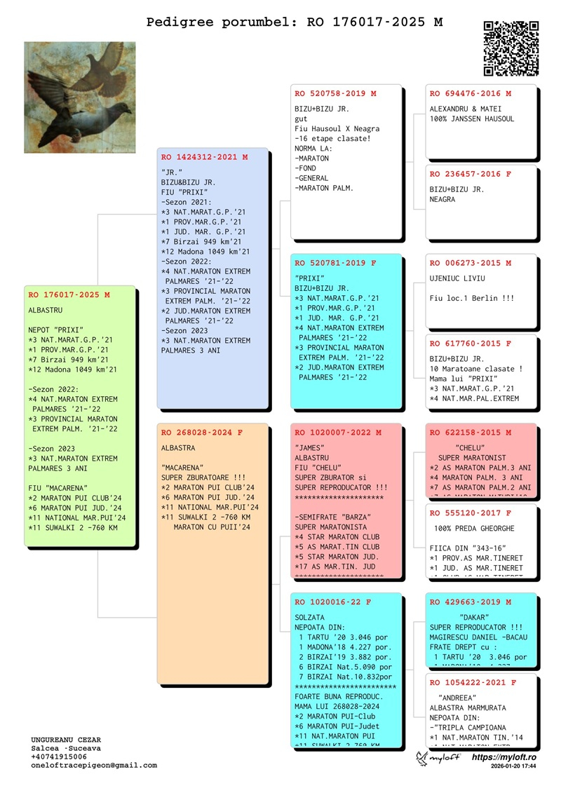 By combining top-quality genetic material with a methodical and professional approach to loft management, Cezar Ungureanu positions himself as a strong contender for further top-level results in the future. His dedication, perseverance, and genuine passion make him a benchmark of excellence in pigeon sport in Suceava County and, implicitly, on the national stage.