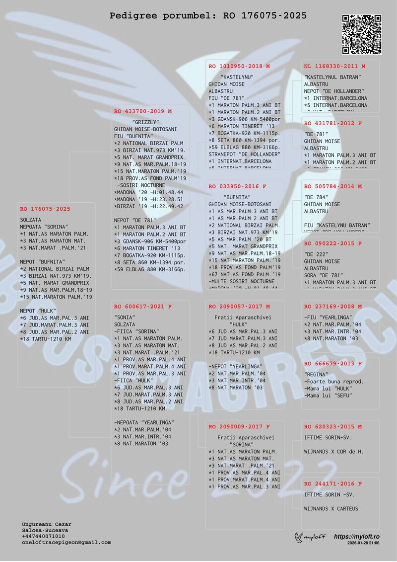 By combining top-quality genetic material with a methodical and professional approach to loft management, Cezar Ungureanu positions himself as a strong contender for further top-level results in the future. His dedication, perseverance, and genuine passion make him a benchmark of excellence in pigeon sport in Suceava County and, implicitly, on the national stage.