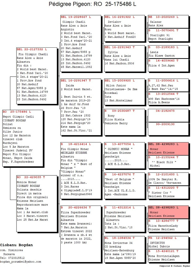 His achievements in competitions reflect a professional and consistent vision. Over the years, the breeder from Siminicea has achieved multiple Top 10 National rankings in the Marathon and Long-Distance categories, won 1st place in Suceava County in races ranging from 800 to 1000 km, and recorded remarkable results in challenging international races held in Ukraine and Poland (for example, Krasnodon). His constant participation in the Burdujeni–Suceava Championship, one of the most competitive areas in the country, confirms the consistency and value of his flying line.