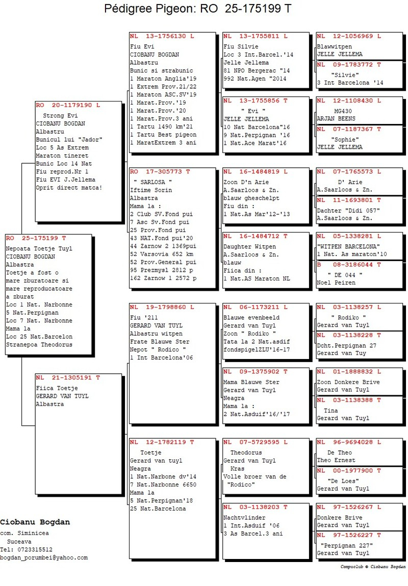His achievements in competitions reflect a professional and consistent vision. Over the years, the breeder from Siminicea has achieved multiple Top 10 National rankings in the Marathon and Long-Distance categories, won 1st place in Suceava County in races ranging from 800 to 1000 km, and recorded remarkable results in challenging international races held in Ukraine and Poland (for example, Krasnodon). His constant participation in the Burdujeni–Suceava Championship, one of the most competitive areas in the country, confirms the consistency and value of his flying line.