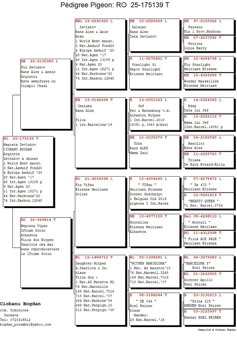 His achievements in competitions reflect a professional and consistent vision. Over the years, the breeder from Siminicea has achieved multiple Top 10 National rankings in the Marathon and Long-Distance categories, won 1st place in Suceava County in races ranging from 800 to 1000 km, and recorded remarkable results in challenging international races held in Ukraine and Poland (for example, Krasnodon). His constant participation in the Burdujeni–Suceava Championship, one of the most competitive areas in the country, confirms the consistency and value of his flying line.