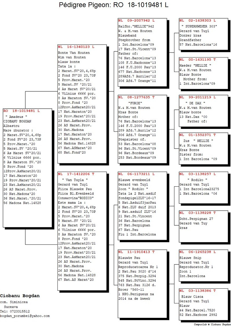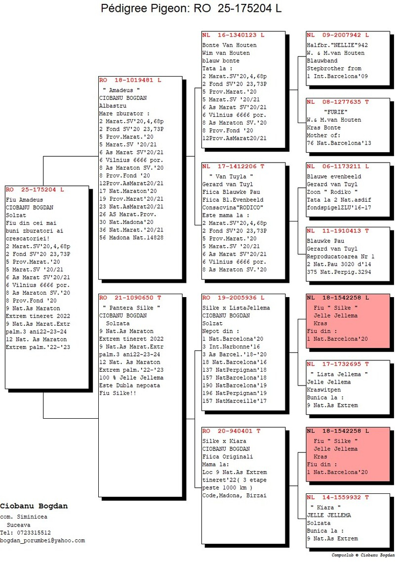 His achievements in competitions reflect a professional and consistent vision. Over the years, the breeder from Siminicea has achieved multiple Top 10 National rankings in the Marathon and Long-Distance categories, won 1st place in Suceava County in races ranging from 800 to 1000 km, and recorded remarkable results in challenging international races held in Ukraine and Poland (for example, Krasnodon). His constant participation in the Burdujeni–Suceava Championship, one of the most competitive areas in the country, confirms the consistency and value of his flying line.