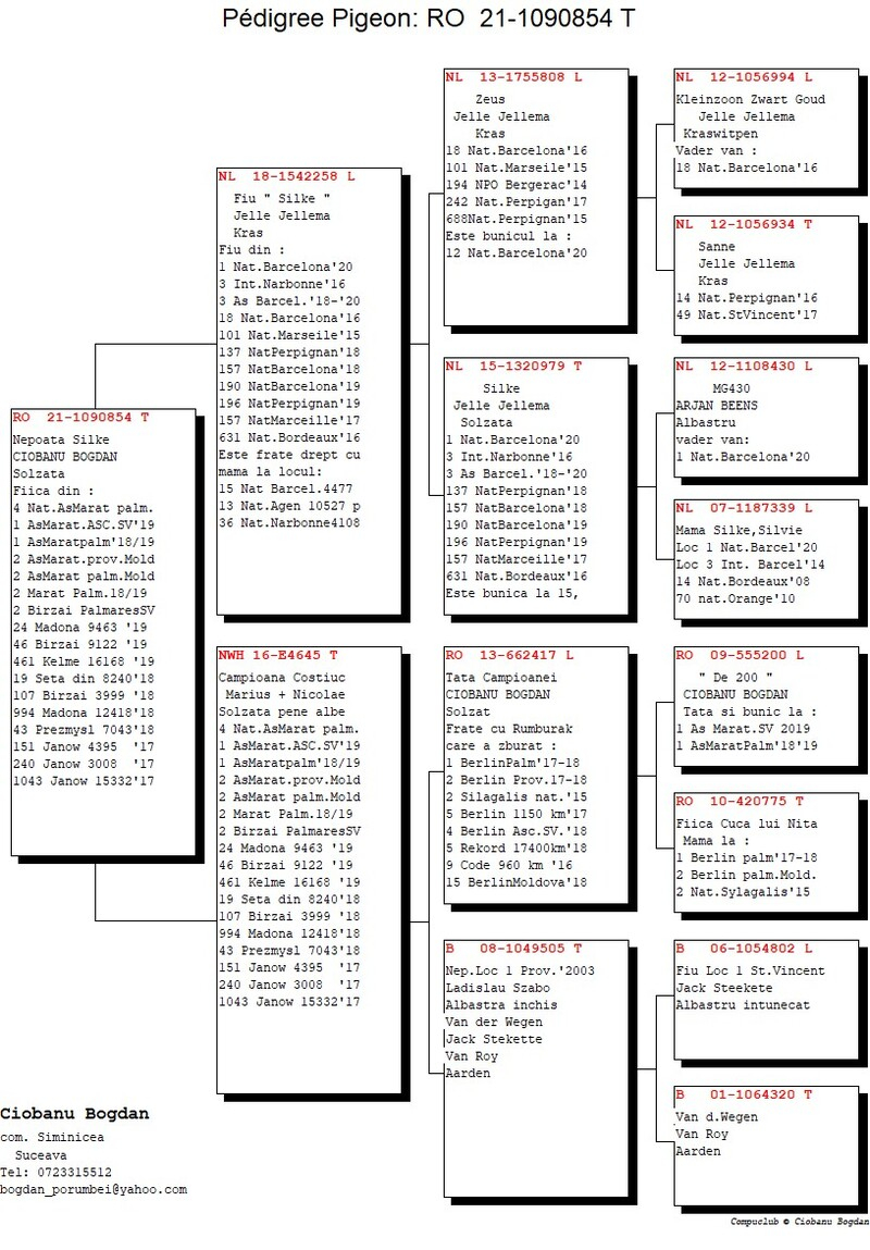 His achievements in competitions reflect a professional and consistent vision. Over the years, the breeder from Siminicea has achieved multiple Top 10 National rankings in the Marathon and Long-Distance categories, won 1st place in Suceava County in races ranging from 800 to 1000 km, and recorded remarkable results in challenging international races held in Ukraine and Poland (for example, Krasnodon). His constant participation in the Burdujeni–Suceava Championship, one of the most competitive areas in the country, confirms the consistency and value of his flying line.