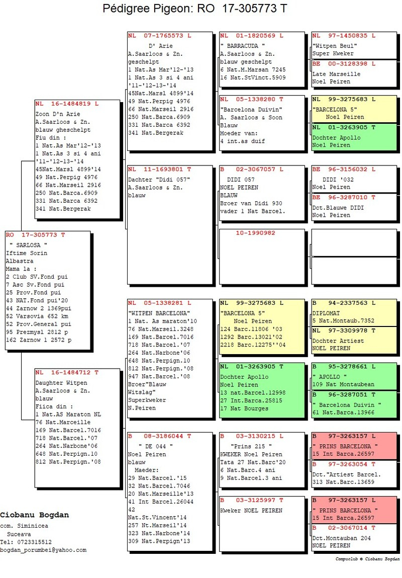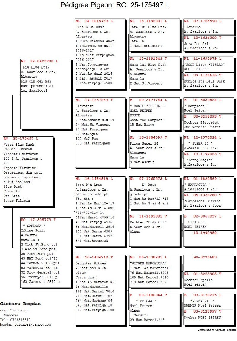 His achievements in competitions reflect a professional and consistent vision. Over the years, the breeder from Siminicea has achieved multiple Top 10 National rankings in the Marathon and Long-Distance categories, won 1st place in Suceava County in races ranging from 800 to 1000 km, and recorded remarkable results in challenging international races held in Ukraine and Poland (for example, Krasnodon). His constant participation in the Burdujeni–Suceava Championship, one of the most competitive areas in the country, confirms the consistency and value of his flying line.