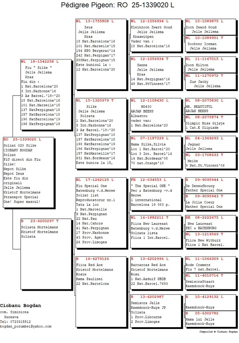 His achievements in competitions reflect a professional and consistent vision. Over the years, the breeder from Siminicea has achieved multiple Top 10 National rankings in the Marathon and Long-Distance categories, won 1st place in Suceava County in races ranging from 800 to 1000 km, and recorded remarkable results in challenging international races held in Ukraine and Poland (for example, Krasnodon). His constant participation in the Burdujeni–Suceava Championship, one of the most competitive areas in the country, confirms the consistency and value of his flying line.