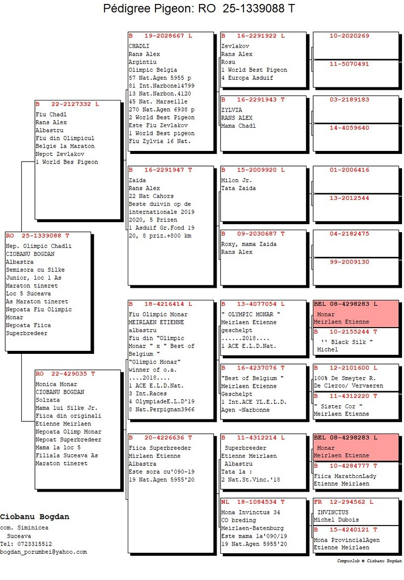 His achievements in competitions reflect a professional and consistent vision. Over the years, the breeder from Siminicea has achieved multiple Top 10 National rankings in the Marathon and Long-Distance categories, won 1st place in Suceava County in races ranging from 800 to 1000 km, and recorded remarkable results in challenging international races held in Ukraine and Poland (for example, Krasnodon). His constant participation in the Burdujeni–Suceava Championship, one of the most competitive areas in the country, confirms the consistency and value of his flying line.