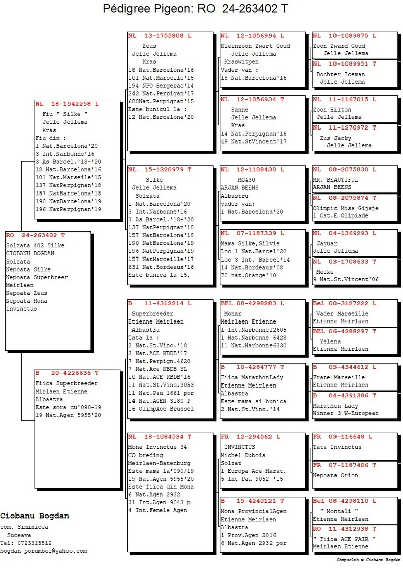 His achievements in competitions reflect a professional and consistent vision. Over the years, the breeder from Siminicea has achieved multiple Top 10 National rankings in the Marathon and Long-Distance categories, won 1st place in Suceava County in races ranging from 800 to 1000 km, and recorded remarkable results in challenging international races held in Ukraine and Poland (for example, Krasnodon). His constant participation in the Burdujeni–Suceava Championship, one of the most competitive areas in the country, confirms the consistency and value of his flying line.