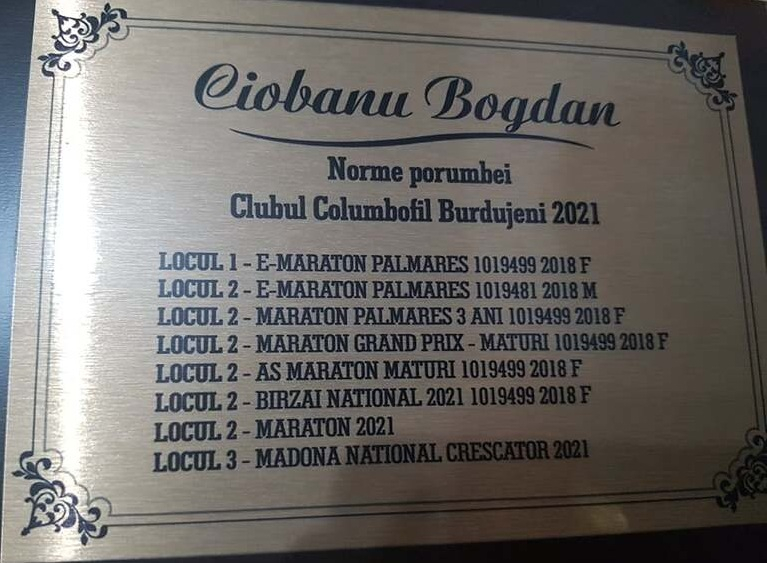 His achievements in competitions reflect a professional and consistent vision. Over the years, the breeder from Siminicea has achieved multiple Top 10 National rankings in the Marathon and Long-Distance categories, won 1st place in Suceava County in races ranging from 800 to 1000 km, and recorded remarkable results in challenging international races held in Ukraine and Poland (for example, Krasnodon). His constant participation in the Burdujeni–Suceava Championship, one of the most competitive areas in the country, confirms the consistency and value of his flying line.