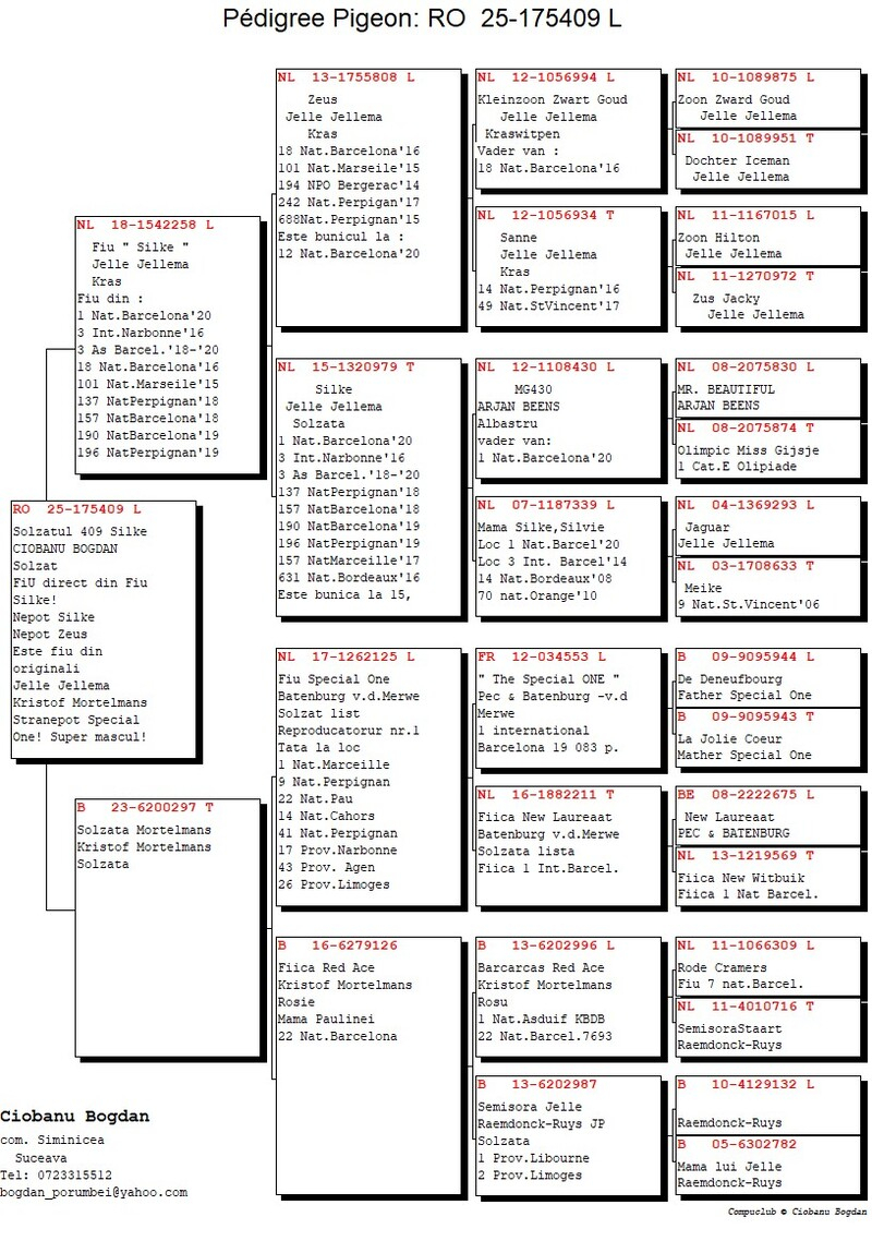 His achievements in competitions reflect a professional and consistent vision. Over the years, the breeder from Siminicea has achieved multiple Top 10 National rankings in the Marathon and Long-Distance categories, won 1st place in Suceava County in races ranging from 800 to 1000 km, and recorded remarkable results in challenging international races held in Ukraine and Poland (for example, Krasnodon). His constant participation in the Burdujeni–Suceava Championship, one of the most competitive areas in the country, confirms the consistency and value of his flying line.