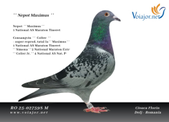 Passionate about pigeon racing from an early age, Cioacă Florin has transformed his passion into a genuine science of performance. Through rigorous selection based on well-founded genetic criteria and through methodical training, he has succeeded in creating a line of pigeons renowned for their balance, strength, and competitive spirit. His results are not accidental but the outcome of sustained effort, discipline, and a clear vision of the direction that high-performance pigeon racing should follow.