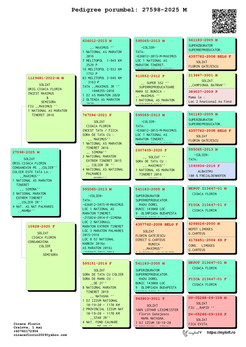 Passionate about pigeon racing from an early age, Cioacă Florin has transformed his passion into a genuine science of performance. Through rigorous selection based on well-founded genetic criteria and through methodical training, he has succeeded in creating a line of pigeons renowned for their balance, strength, and competitive spirit. His results are not accidental but the outcome of sustained effort, discipline, and a clear vision of the direction that high-performance pigeon racing should follow.