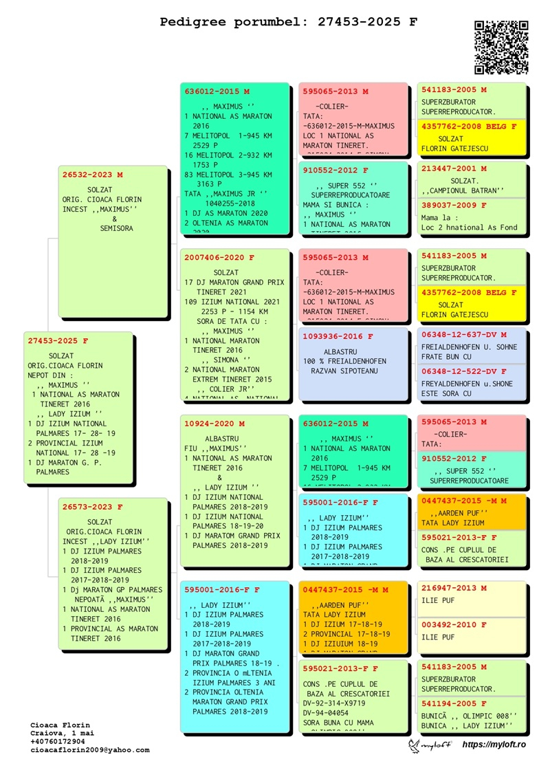 Passionate about pigeon racing from an early age, Cioacă Florin has transformed his passion into a genuine science of performance. Through rigorous selection based on well-founded genetic criteria and through methodical training, he has succeeded in creating a line of pigeons renowned for their balance, strength, and competitive spirit. His results are not accidental but the outcome of sustained effort, discipline, and a clear vision of the direction that high-performance pigeon racing should follow.