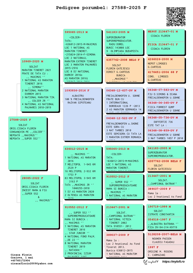 Passionate about pigeon racing from an early age, Cioacă Florin has transformed his passion into a genuine science of performance. Through rigorous selection based on well-founded genetic criteria and through methodical training, he has succeeded in creating a line of pigeons renowned for their balance, strength, and competitive spirit. His results are not accidental but the outcome of sustained effort, discipline, and a clear vision of the direction that high-performance pigeon racing should follow.