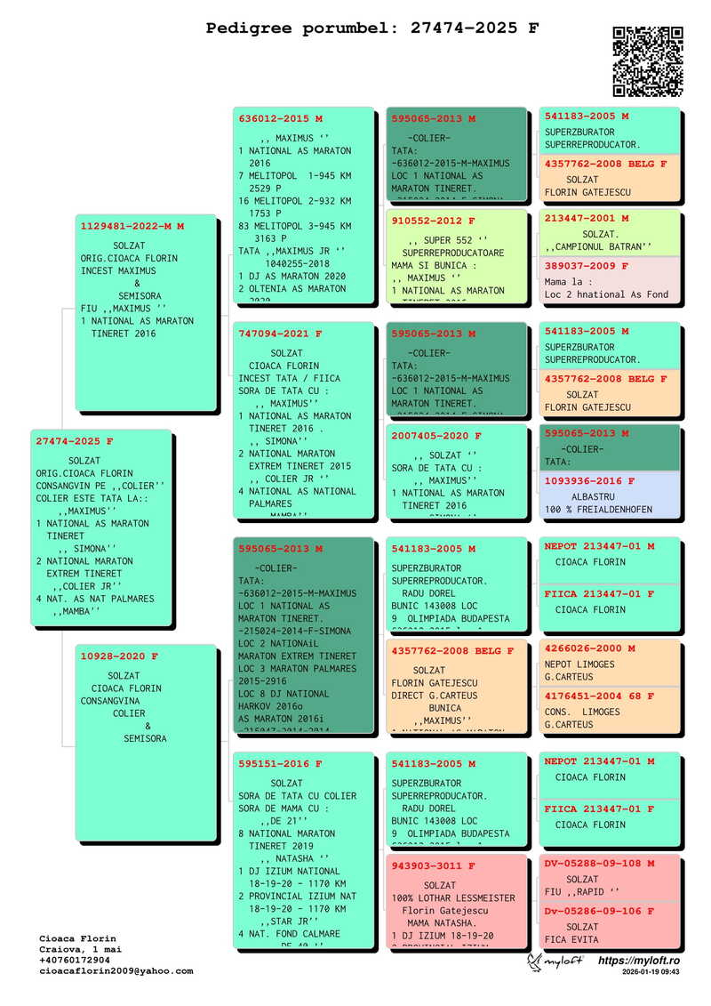 Passionate about pigeon racing from an early age, Cioacă Florin has transformed his passion into a genuine science of performance. Through rigorous selection based on well-founded genetic criteria and through methodical training, he has succeeded in creating a line of pigeons renowned for their balance, strength, and competitive spirit. His results are not accidental but the outcome of sustained effort, discipline, and a clear vision of the direction that high-performance pigeon racing should follow.