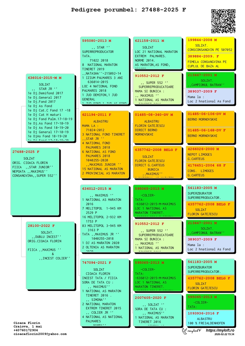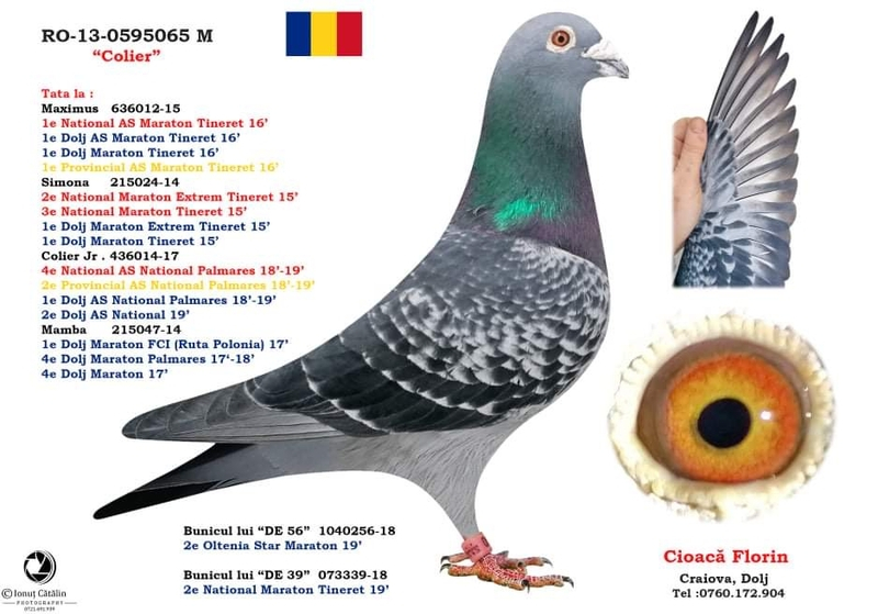 Passionate about pigeon racing from an early age, Cioacă Florin has transformed his passion into a genuine science of performance. Through rigorous selection based on well-founded genetic criteria and through methodical training, he has succeeded in creating a line of pigeons renowned for their balance, strength, and competitive spirit. His results are not accidental but the outcome of sustained effort, discipline, and a clear vision of the direction that high-performance pigeon racing should follow.