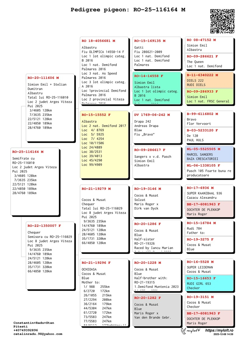 Through the efficient collaboration between Cristi Constantin, Cătălin Radu, and Iulian Stan, this pigeon racing trio demonstrates that lasting performance is achieved through discipline, shared vision, and a solid genetic base. Their remarkable results, obtained consistently in recent years, stand as proof of professionalism and genuine passion for pigeon racing, significantly contributing to the prestige of this sport in Romania.