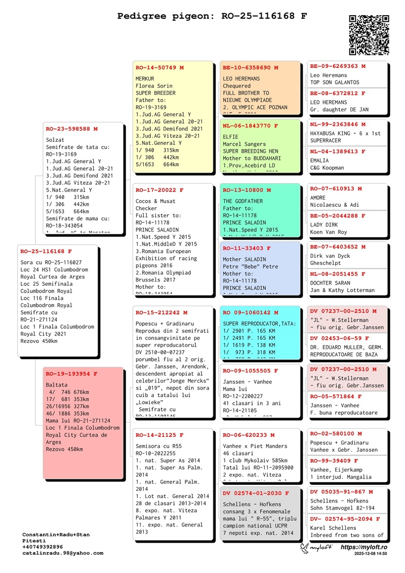 Through the efficient collaboration between Cristi Constantin, Cătălin Radu, and Iulian Stan, this pigeon racing trio demonstrates that lasting performance is achieved through discipline, shared vision, and a solid genetic base. Their remarkable results, obtained consistently in recent years, stand as proof of professionalism and genuine passion for pigeon racing, significantly contributing to the prestige of this sport in Romania.