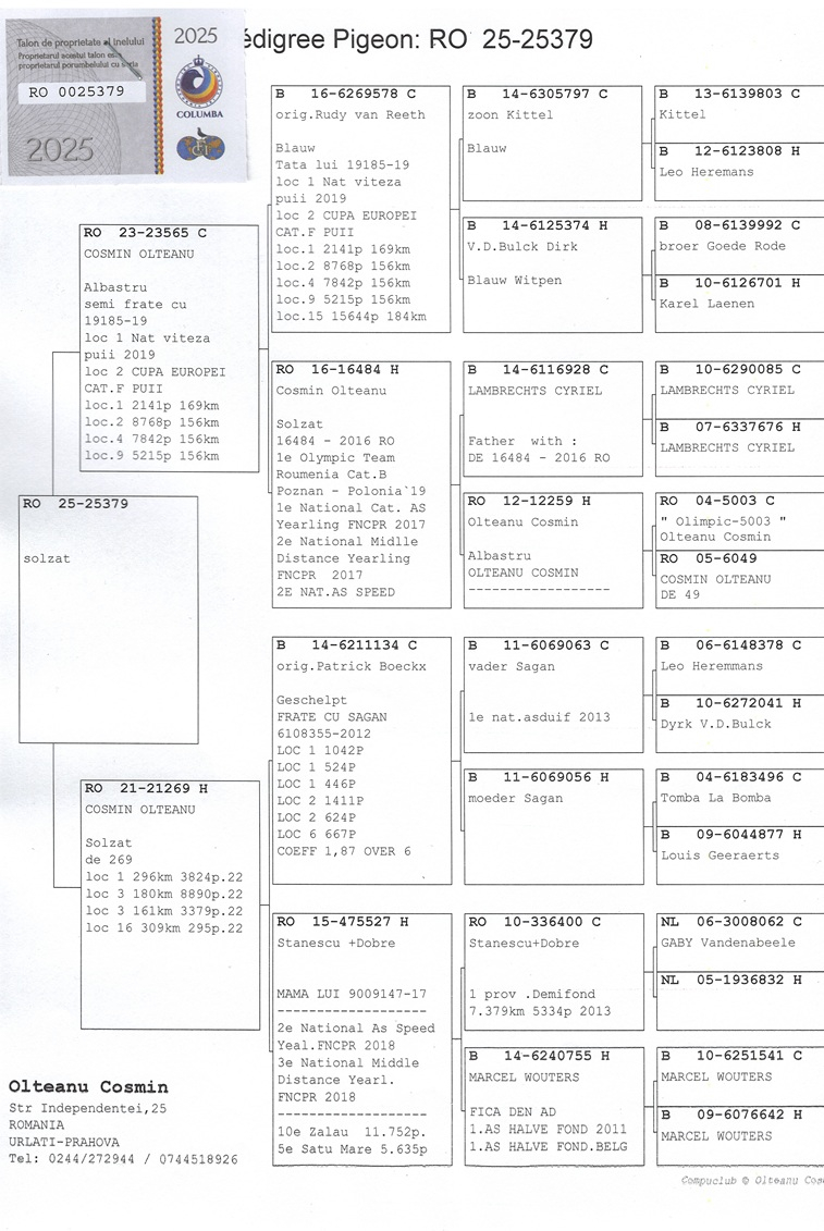 Thus, the 2021 season confirmed Cosmin Olteanu’s status as one of Prahova’s most distinguished pigeon fanciers and a true benchmark of modern Romanian pigeon racing.