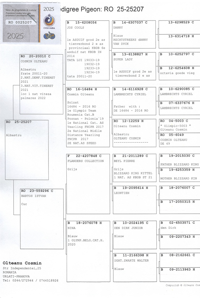 Thus, the 2021 season confirmed Cosmin Olteanu’s status as one of Prahova’s most distinguished pigeon fanciers and a true benchmark of modern Romanian pigeon racing.