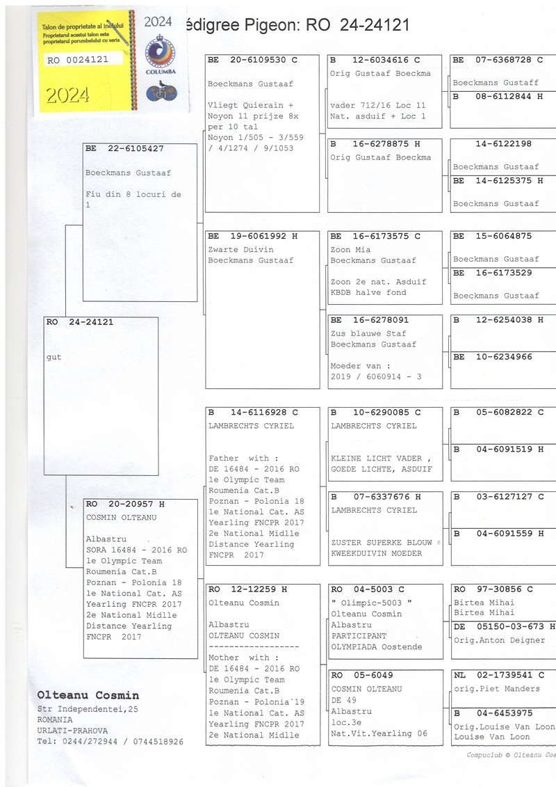 Thus, the 2021 season confirmed Cosmin Olteanu’s status as one of Prahova’s most distinguished pigeon fanciers and a true benchmark of modern Romanian pigeon racing.