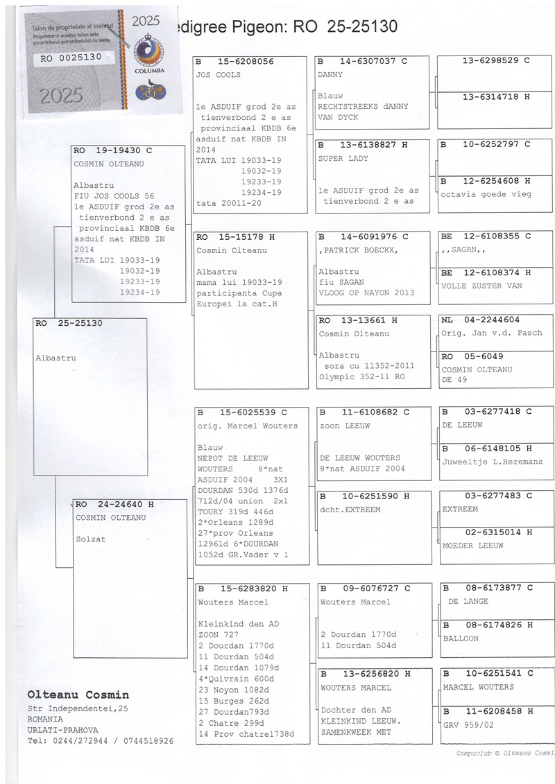 Thus, the 2021 season confirmed Cosmin Olteanu’s status as one of Prahova’s most distinguished pigeon fanciers and a true benchmark of modern Romanian pigeon racing.