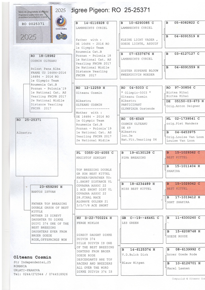 Thus, the 2021 season confirmed Cosmin Olteanu’s status as one of Prahova’s most distinguished pigeon fanciers and a true benchmark of modern Romanian pigeon racing.