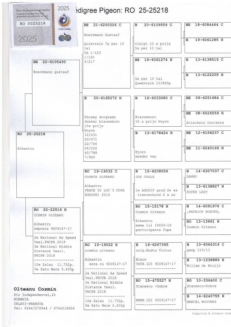 Thus, the 2021 season confirmed Cosmin Olteanu’s status as one of Prahova’s most distinguished pigeon fanciers and a true benchmark of modern Romanian pigeon racing.