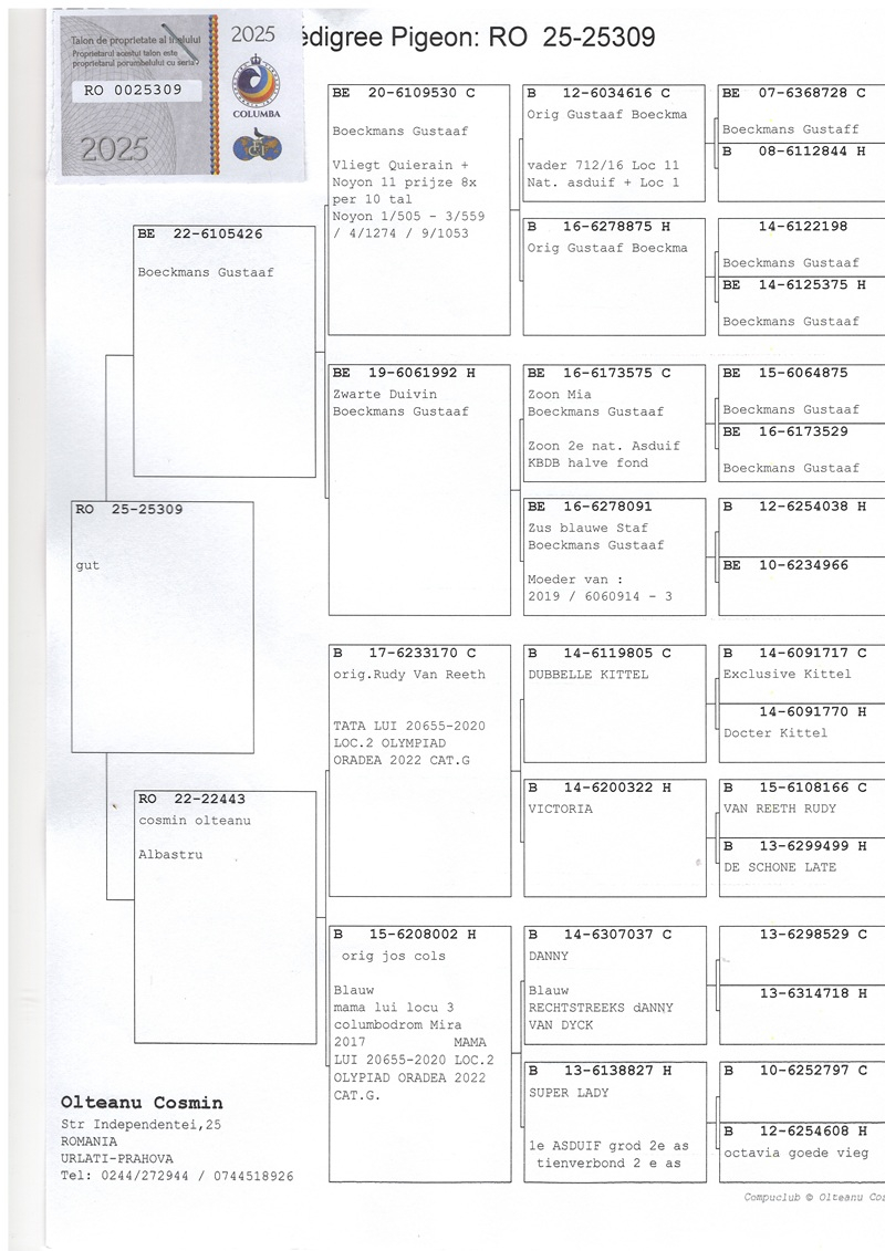Thus, the 2021 season confirmed Cosmin Olteanu’s status as one of Prahova’s most distinguished pigeon fanciers and a true benchmark of modern Romanian pigeon racing.
