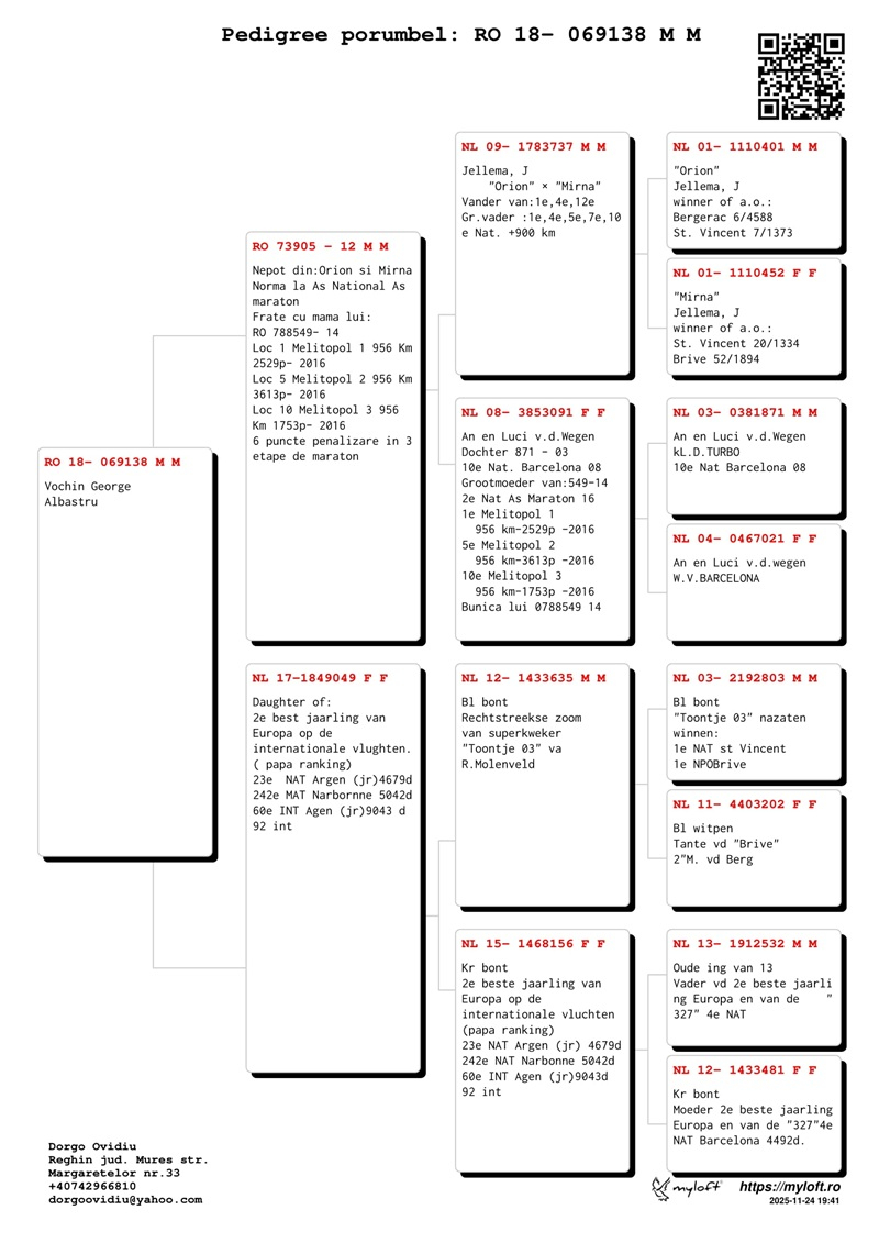 Ovidiu Dorgo’s success in marathon races is due both to the exceptional quality of the pigeons in his loft and to the intuition, passion, and dedication he brings to his work. In a region where top pigeon-racing results require hard work and great sacrifice, he stands out as a true model of perseverance, professionalism, and excellence.