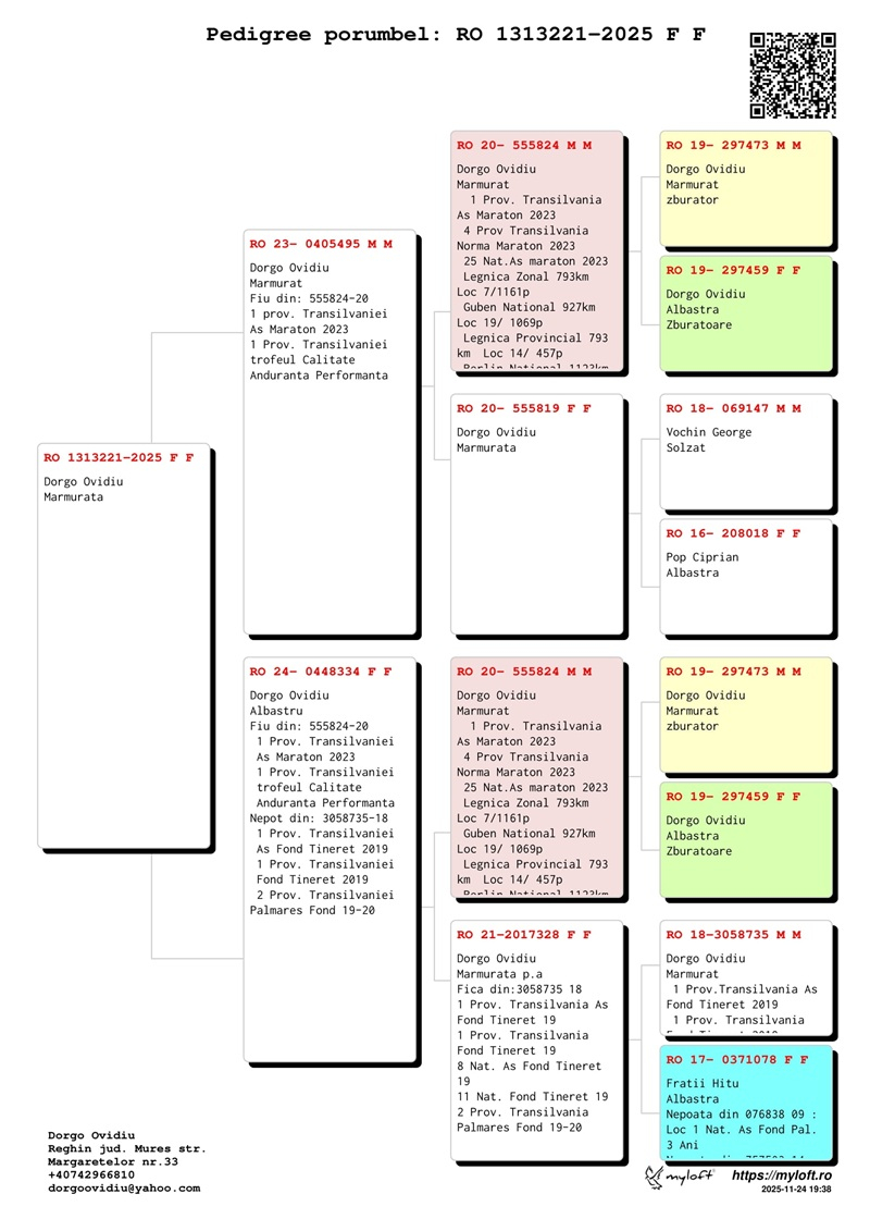 Ovidiu Dorgo’s success in marathon races is due both to the exceptional quality of the pigeons in his loft and to the intuition, passion, and dedication he brings to his work. In a region where top pigeon-racing results require hard work and great sacrifice, he stands out as a true model of perseverance, professionalism, and excellence.