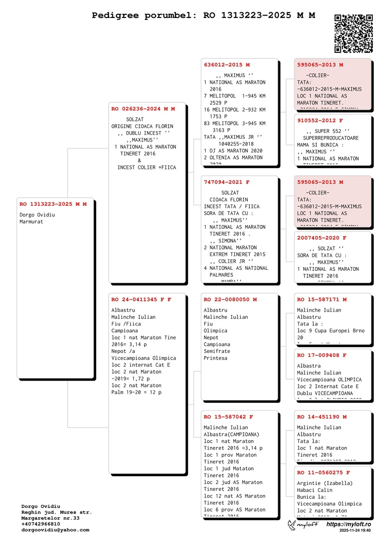 Ovidiu Dorgo’s success in marathon races is due both to the exceptional quality of the pigeons in his loft and to the intuition, passion, and dedication he brings to his work. In a region where top pigeon-racing results require hard work and great sacrifice, he stands out as a true model of perseverance, professionalism, and excellence.