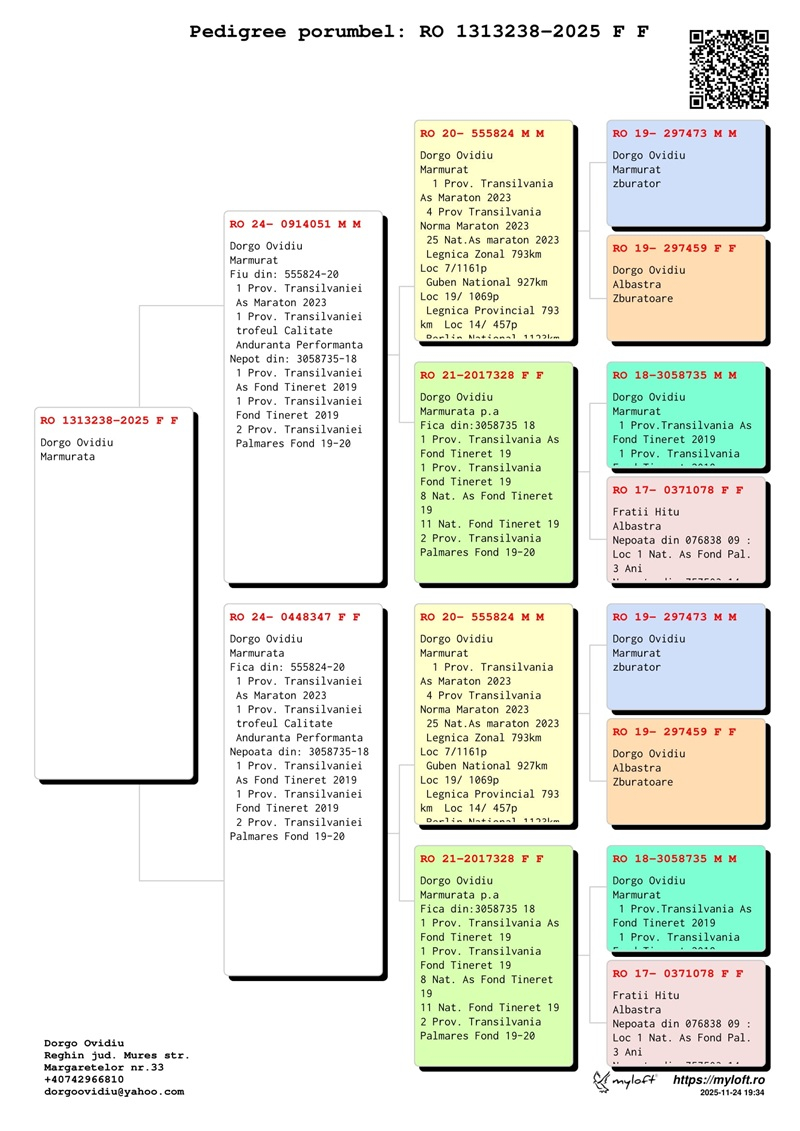 Ovidiu Dorgo’s success in marathon races is due both to the exceptional quality of the pigeons in his loft and to the intuition, passion, and dedication he brings to his work. In a region where top pigeon-racing results require hard work and great sacrifice, he stands out as a true model of perseverance, professionalism, and excellence.