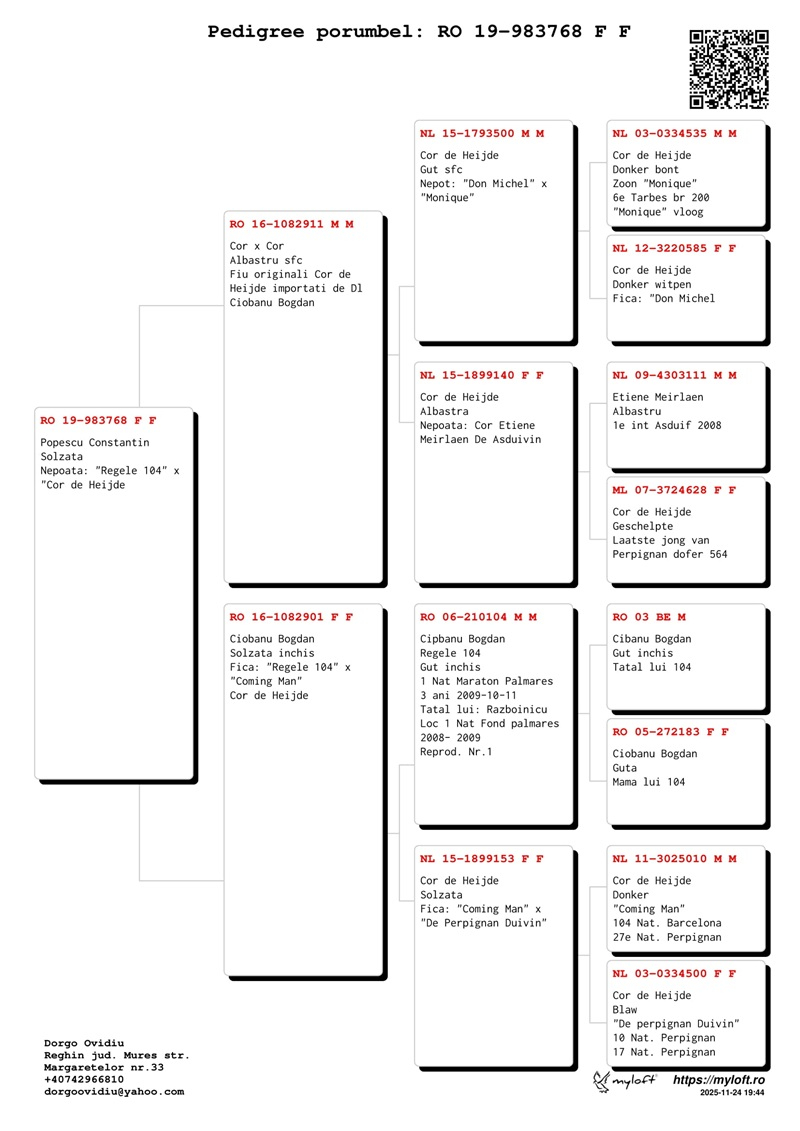 Ovidiu Dorgo’s success in marathon races is due both to the exceptional quality of the pigeons in his loft and to the intuition, passion, and dedication he brings to his work. In a region where top pigeon-racing results require hard work and great sacrifice, he stands out as a true model of perseverance, professionalism, and excellence.