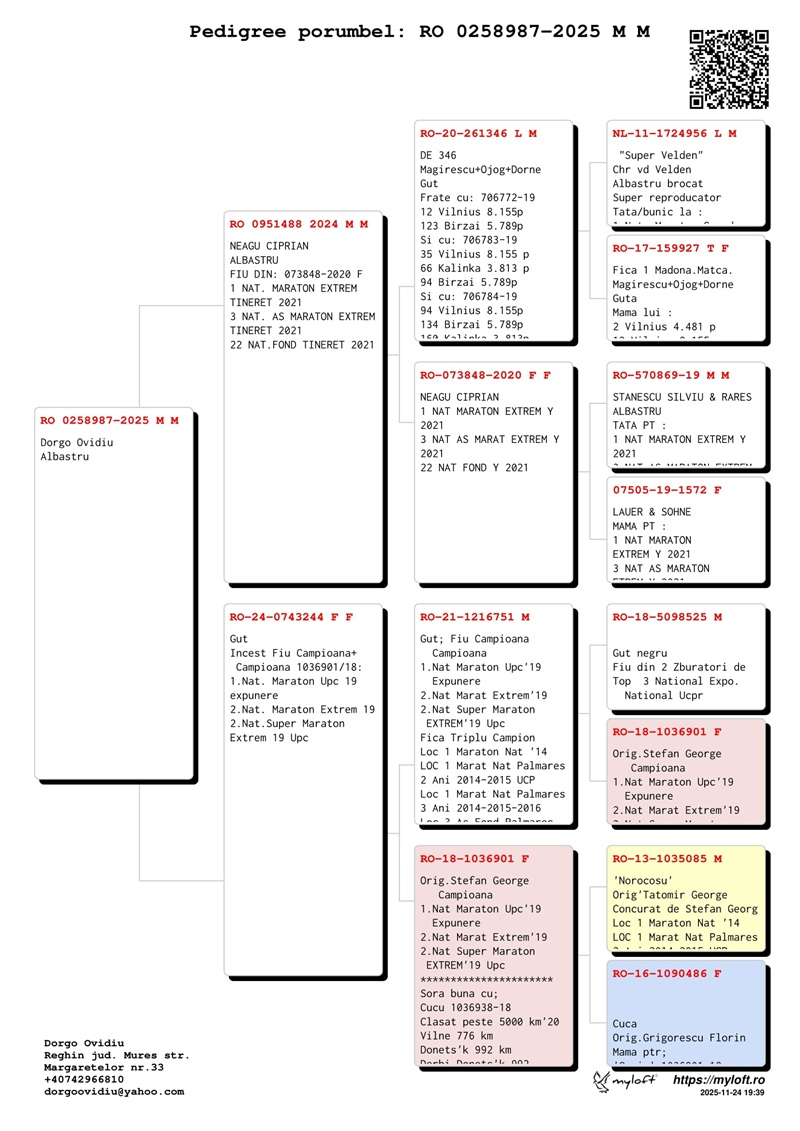 Ovidiu Dorgo’s success in marathon races is due both to the exceptional quality of the pigeons in his loft and to the intuition, passion, and dedication he brings to his work. In a region where top pigeon-racing results require hard work and great sacrifice, he stands out as a true model of perseverance, professionalism, and excellence.