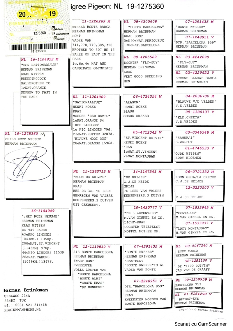 The year 2021 marked a shift in his strategy, focusing exclusively on marathon competitions. In this context, his breeding loft was enriched with pigeons from renowned lines, such as those of Gerard van Tuyl, Wim van Houten, Nowen Paesen, Batemburg v.d. Merwe, Herman Brinkman, Menne, Wim Muller, Kipp & Sons, among others.
