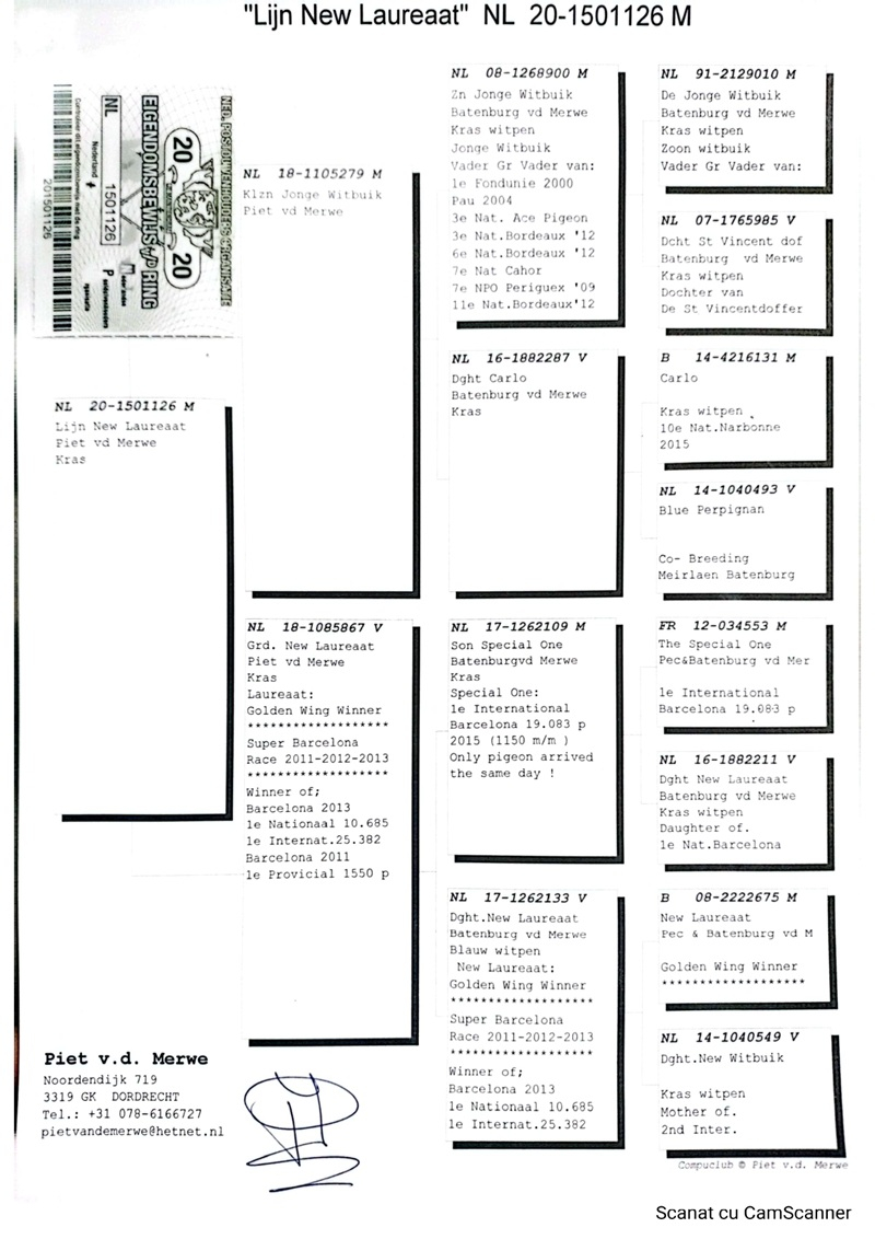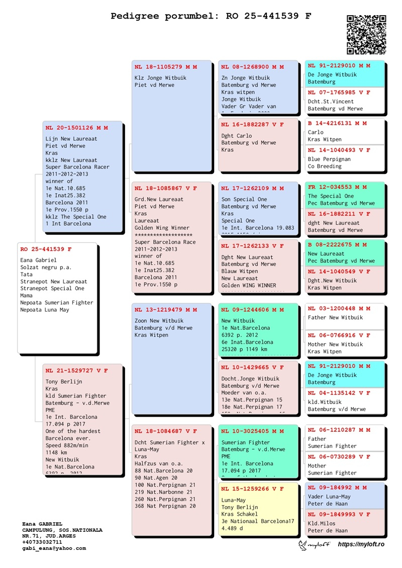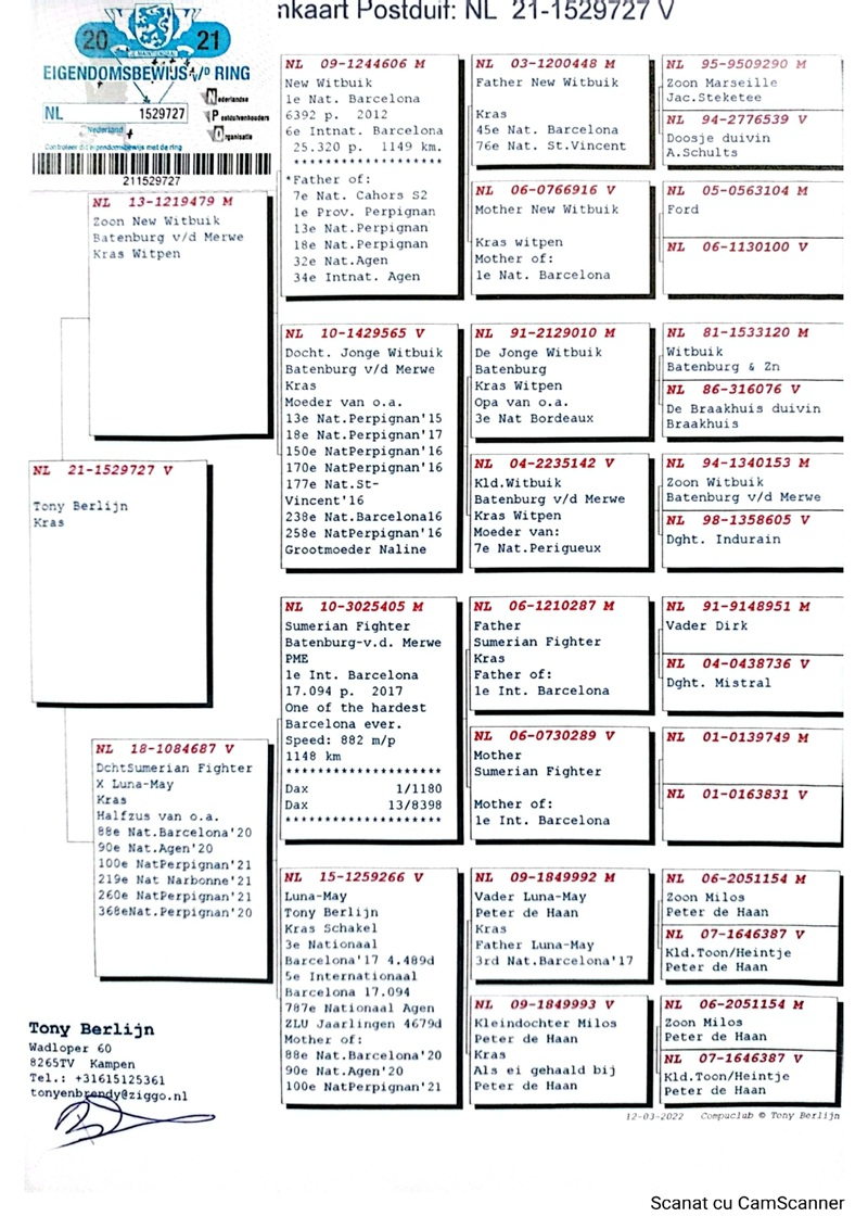The year 2021 marked a shift in his strategy, focusing exclusively on marathon competitions. In this context, his breeding loft was enriched with pigeons from renowned lines, such as those of Gerard van Tuyl, Wim van Houten, Nowen Paesen, Batemburg v.d. Merwe, Herman Brinkman, Menne, Wim Muller, Kipp & Sons, among others.