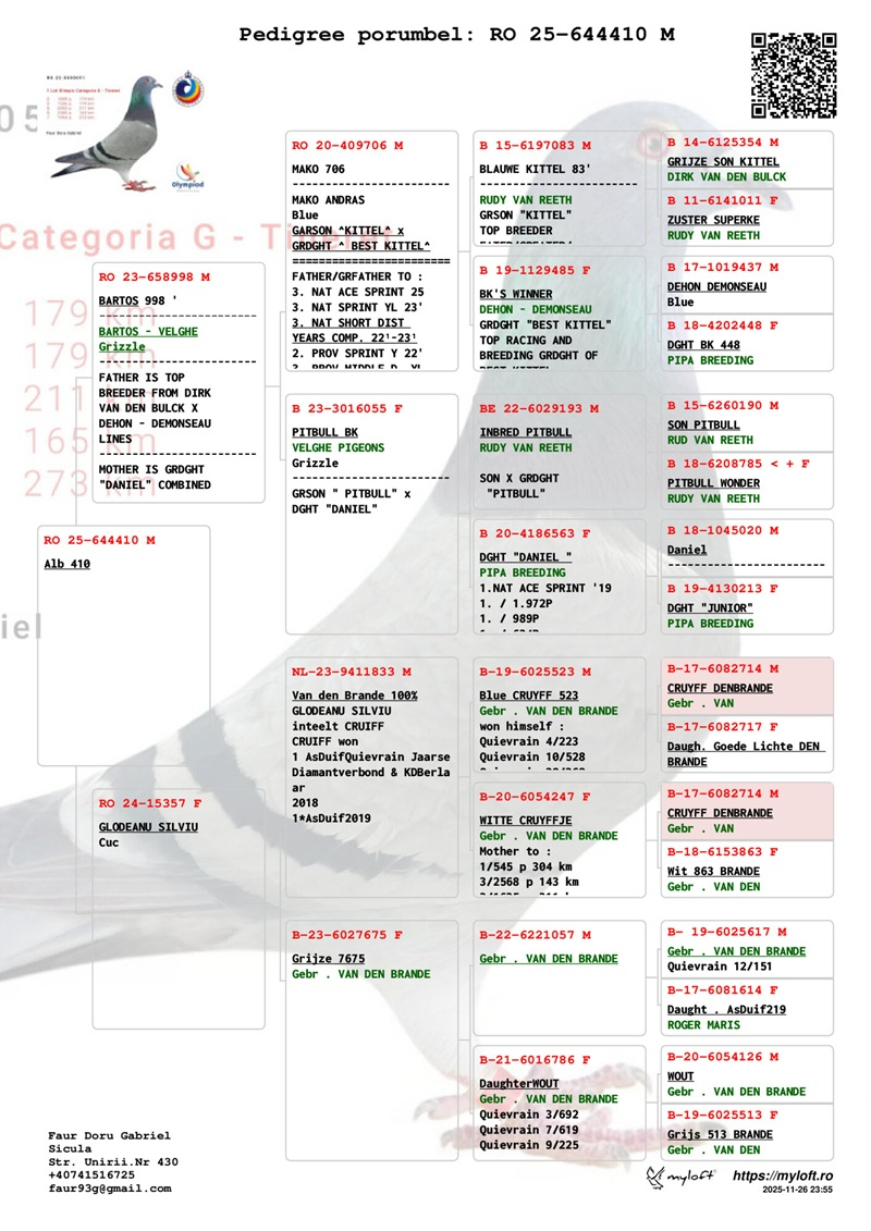 A key factor behind these achievements has been the outstanding quality of his pigeons, most of which originate from his trusted friend and mentor, Marta Daniel. Through this collaboration, Faur Gabriel was able to establish a strong breeding foundation based on elite pigeons, which proved decisive in competitions.